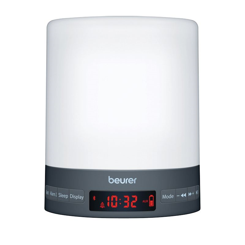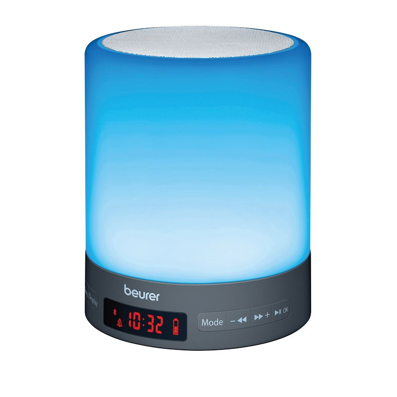 - Choisissez de vous réveiller avec l’alarme, la radio, 2 mélodies de réveil ou votre propre musique via Bluetooth, idem pour s’endormir. 2 alarmes prédéfinies différentes. Affichage lumineux réglable, fonction couleurs changeantes. Fonction par batterie rechargeable ou adaptateur secteur.