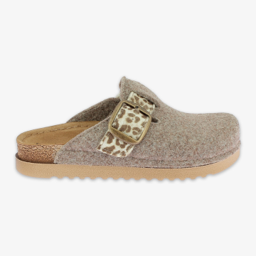 La mule ISALIE se distingue par son style cocooning chic et son confort incomparable. Sa large bride décorative à motif léopard apporte une touche tendance et moderne. La semelle ergonomique assure une bonne stabilité et un confort idéal pour un usage quotidien.
