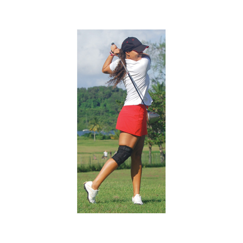 - Système breveté d’insert rotulien en silicone « Dual durometer » : se positionne à même la peau et applique une pression correctrice constante sur la rotule.