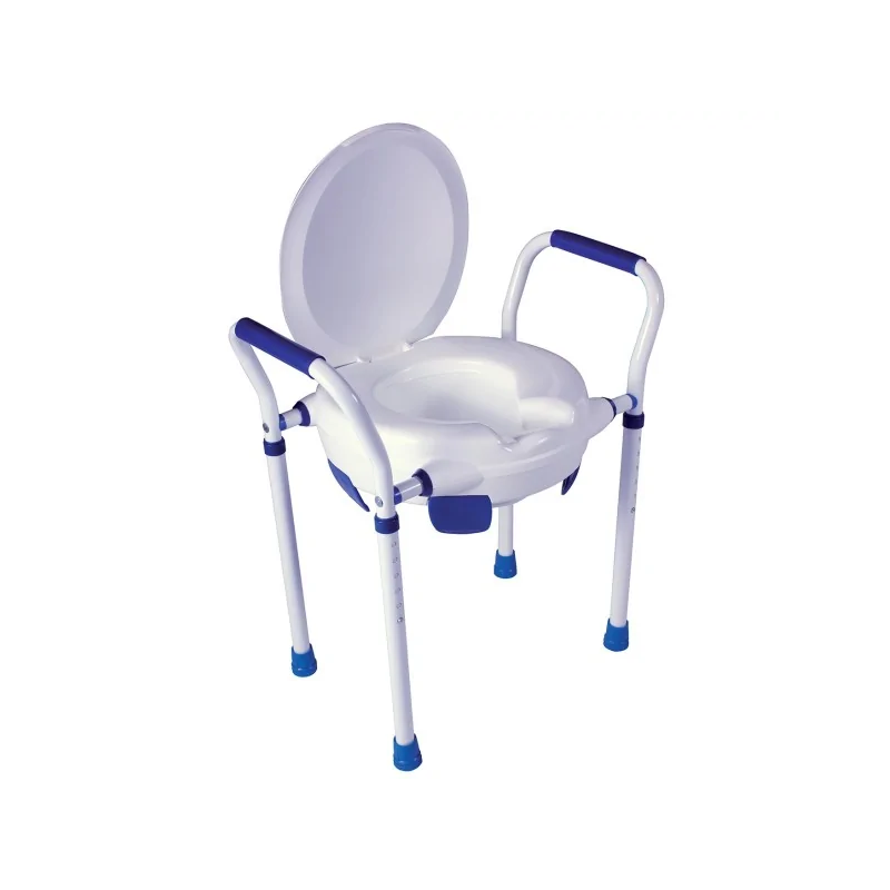 Pour accéder aux WC, il est possible de s’appuyer sur le cadre qui est muni de 4 pieds télescopiques réglables intégrés à la réhausse.