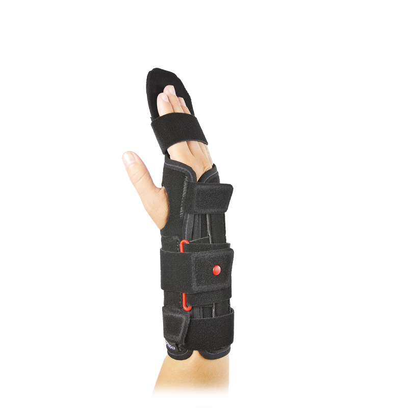 .Système de fermeture réglable avec 4 sangles de serrage et boucles au poignet, assurant une immobilisation optimale.