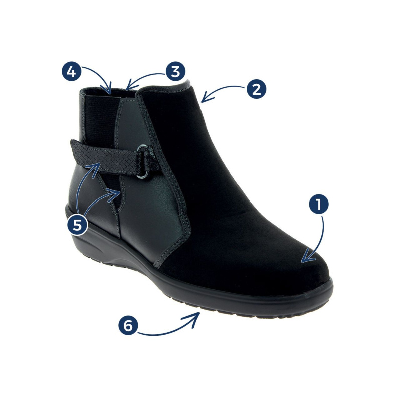 avant-pied entièrement extensible et déperlant, créé pour s'adapter aux orteils déformés. L'enfilage est facilité par une fermeture à glissière longue, simplifiant ainsi vos mouvements au quotidien. Lorsque la chaleur est nécessaire, la doublure chaude de la bottine Syrielle vous offre une sensation de confort et de bien-être, même pendant les journées les plus fraîches. Elle ajoute une couche de chaleur douillette à chaque pas. L'intérieur de la bottine est tout aussi personnalisable. La semelle intérieure et l'intercalaire sont amovibles, ce qui vous permet d'ajuster la chaussure au volume de votre pied ou de la remplacer par une semelle orthopédique sur mesure, pour un confort optimal.