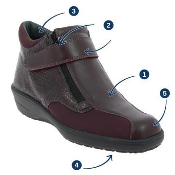 Découvrez la bottine de ville Soizic : une harmonie parfaite entre élégance citadine et fonctionnalité orthopédique pour les femmes. Conçue pour offrir le confort ultime à des pieds sensibles, déformés ou de largeur plus importante, la Soizic est bien plus qu'une simple bottine, c'est une solution de bien-être pour vos pieds.Dotée d'une double zone extensible déperlante spécialement conçue pour les zones de pression liées à l'hallux valgus, la Soizic s'adapte en douceur à vos pieds, minimisant tout inconfort. Cette caractéristique novatrice offre une solution ciblée pour ceux qui souffrent de cette pathologie, tout en préservant le style.Les deux fermetures à glissière latérales de la bottine Soizic ouvrent généreusement la chaussure, simplifiant ainsi son enfilage. Cette solution astucieuse permet un accès aisé et rapide, idéal pour les personnes cherchant à éviter les contraintes lors de la mise en place des chaussures.Pour une adaptation parfaite à votre pied, la Soizic est équipée d'une semelle intérieure et d'un intercalaire amovibles. Cette fonctionnalité vous permet de régler le volume de la chaussure selon vos besoins, et offre également de l'espace pour loger des semelles orthopédiques sur mesure, si nécessaire.La semelle extérieure WETGRIP® a été spécialement conçue pour garantir une stabilité optimale, même sur des surfaces sèches ou mouillées, tout en restant étonnamment légère. Chaque pas est assuré, vous offrant une confiance absolue lors de vos déplacements.L'assemblage solide du dessus et de la semelle de la Soizic garantit une étanchéité durable, vous offrant une protection contre les intempéries. Marchez en ville en toute confiance, quelles que soient les conditions météorologiques.Si vous recherchez une bottine qui offre style et fonctionnalité pour des pieds sensibles, déformés ou larges, la bottine Soizic répondra à vos besoins. Elle allie l'adaptabilité de la double zone extensible, la praticité des fermetures à glissière et la personnalisation du soutien grâce aux éléments amovibles.Optez pour la bottine de ville Soizic et découvrez comment le confort peut coexister avec l'élégance. Offrez à vos pieds délicats toute l'attention et le soin qu'ils méritent tout en affichant une allure urbaine.